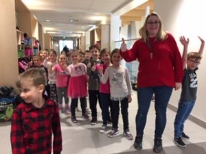 Considérant les conditions météorologiques, la marche sur la persévérance a eu lieu mais à l’intérieur des murs de l’école. En effet, les élèves ont marché en suivant un parcours qui avait été planifié par mesdames Annick Lauzon et Annick St-Pierre.